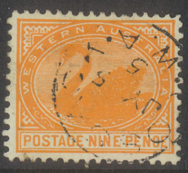 Western Australia 1903 9d Swan Yellow-Orange WMK V/Crown SG122 FU #AUBK