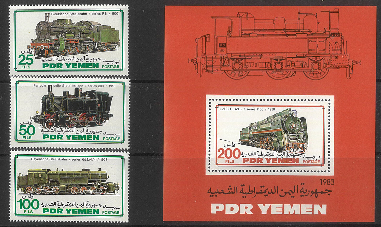 Yemen 1983 Trains Set/3 Stamps & Mini Sheet Scott 302/04, 306 MUH 6-1